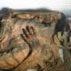 Esta fotografía, capturada en agosto de 2024 y proporcionada por un equipo de investigadores, muestra un ser humano momificado perteneciente a la cultura Chancay de Perú....