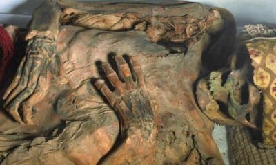 Esta fotografía, capturada en agosto de 2024 y proporcionada por un equipo de investigadores, muestra un ser humano momificado perteneciente a la cultura Chancay de Perú....